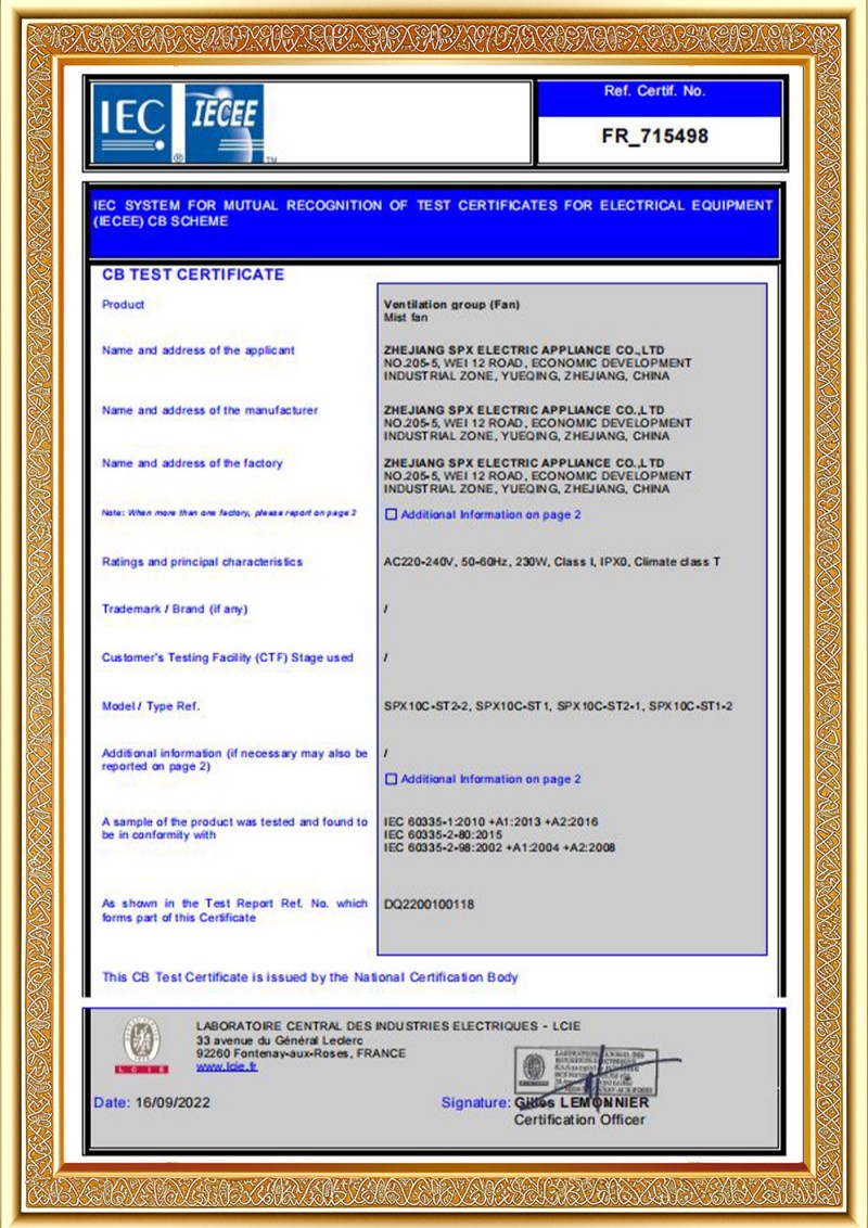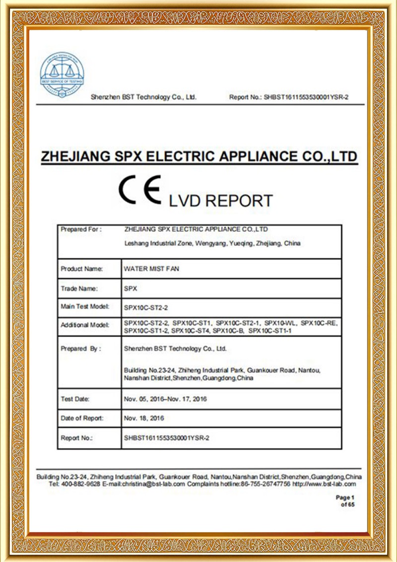 SPX on saanut Kiinan pakollisen sertifikaatin (CCC), CE-sertifioinnin ja ISO9001-standardin sertifikaatin sekä erilaisia sertifikaatteja eri tuotteille, jotka vastaavat asiakkaiden tarpeita